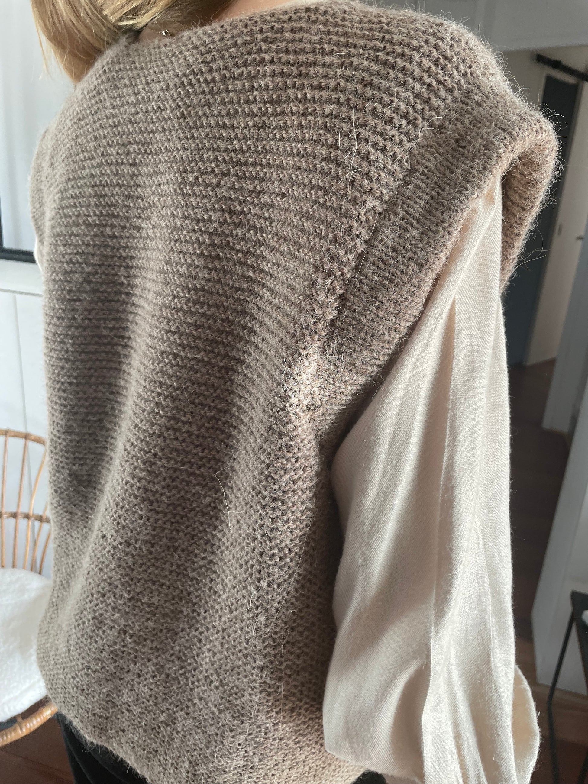 Ici le gilet est tricoté en taille S. Vous pouvez le porter plus ou moins ajusté si vous le souhaitez.
