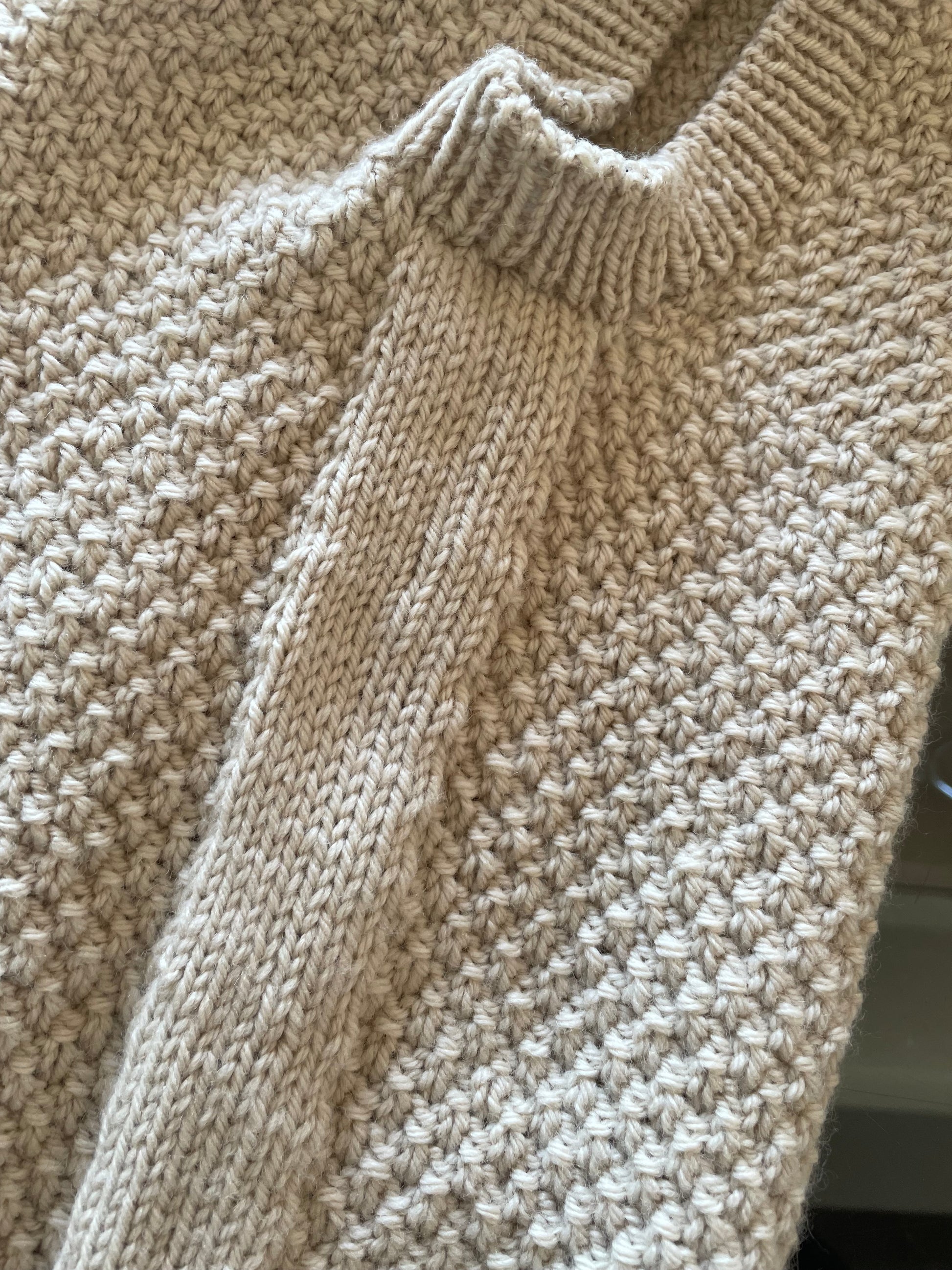 PULL texturé au point de blé, ample, finitions italian bind off.