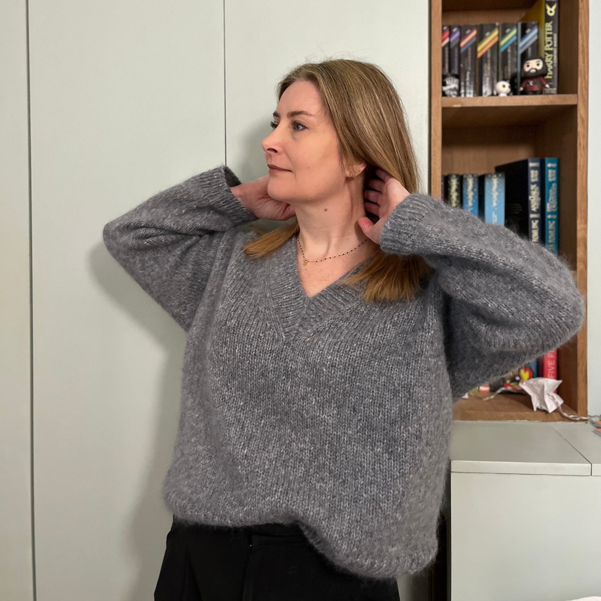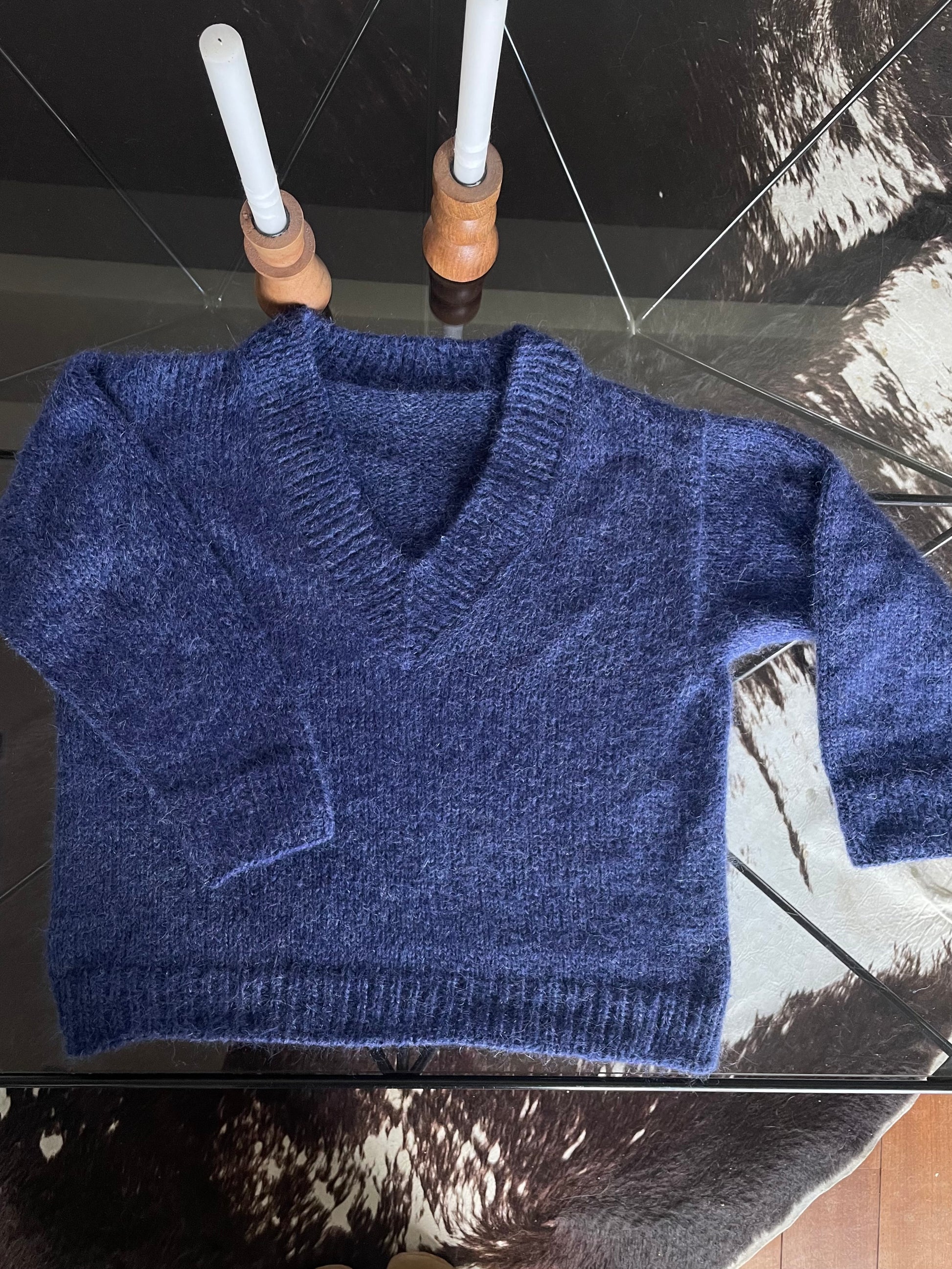 Le pull se tricote de haut en bas.