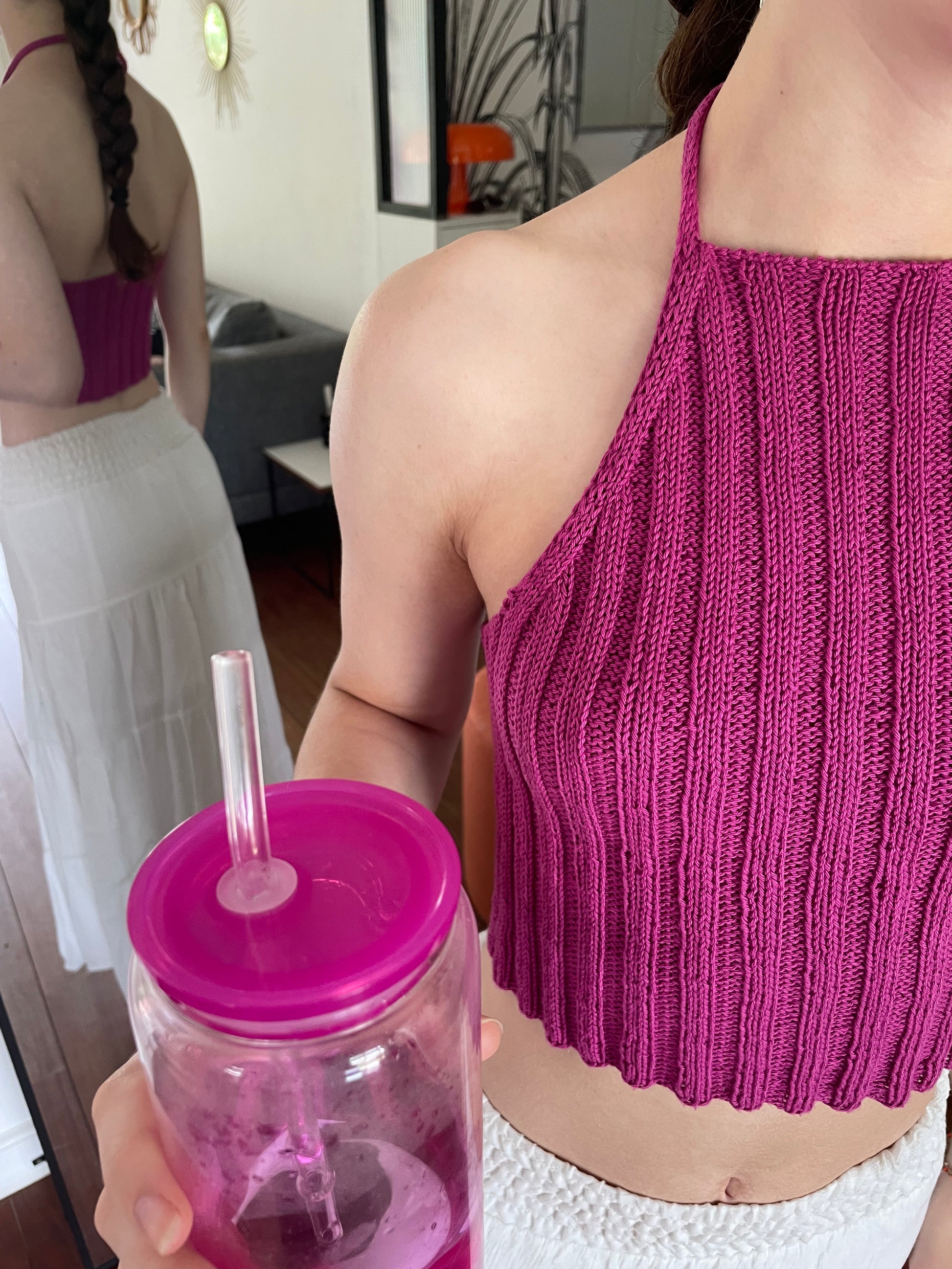 Le petit top dos nu parfait pour l’été, en cotes 3×3 et finitions double tricot.